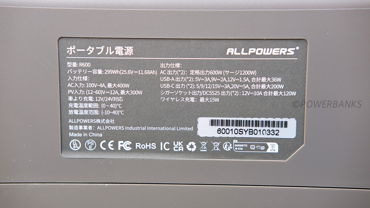 さらに詳しいスペックは「ALLPOWERS R600製品情報」をご覧ください。