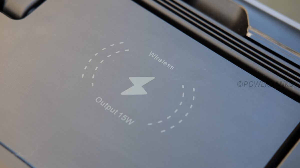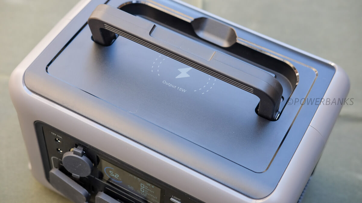 天板は平らで、ワイヤレス充電(15W)と収納タイプの持ち手が付いています。