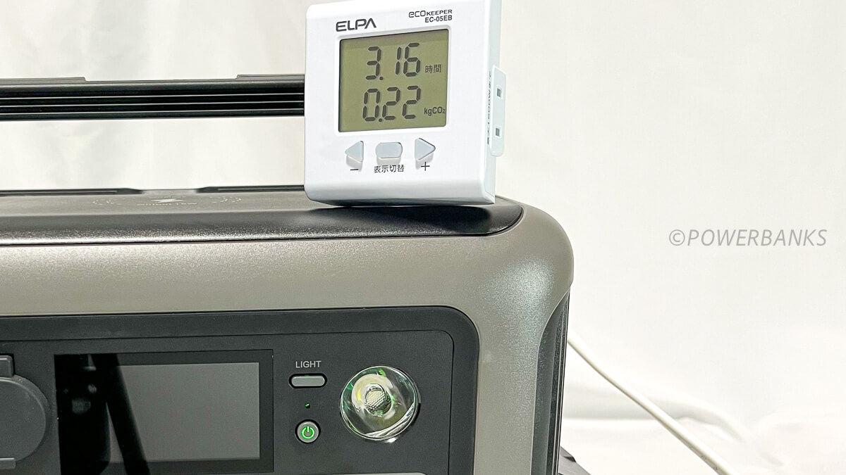 充電してみると、容量が410Whありました。カタログ値は299Whです。実際に使える容量をカタログ値にしている可能性がありますが、この製品は良心的なものであると思われます。