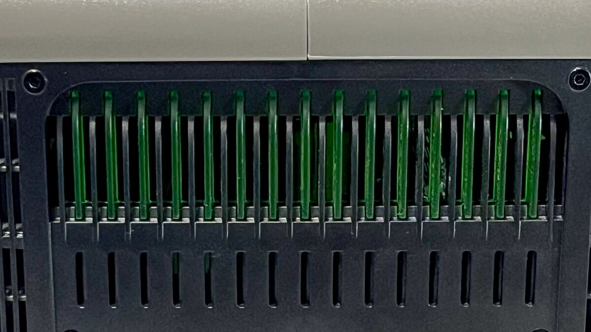 サイドは換気口とアウトプット グリーンのLEDが高級感をもたらす