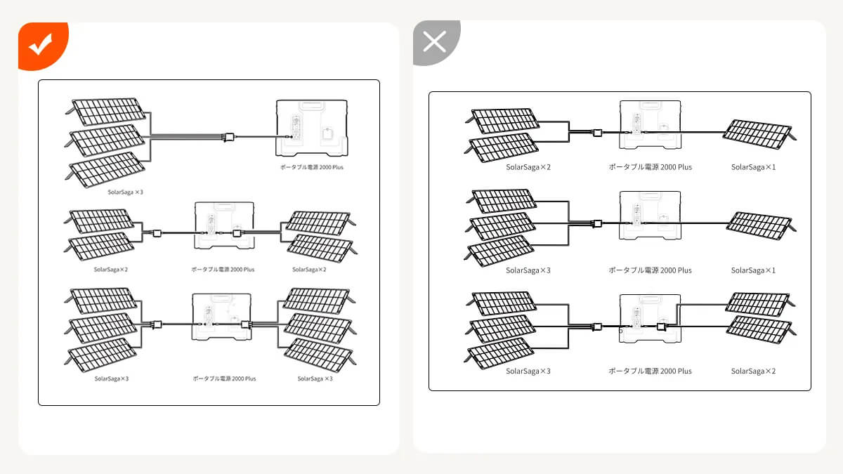 2枚以上のパネルを接続したい場合の参考として、以下に正しい接続方法を示した画像を掲載します。